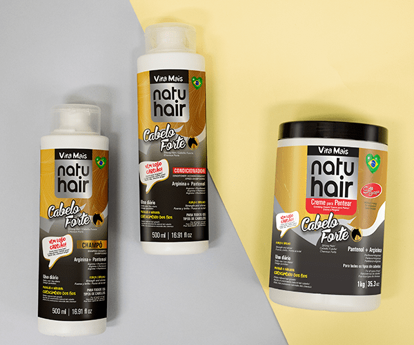 Após lavar os cabelos com o Champô, aplique sobre os cabelos húmidos em toda extensão dos fios. Massaje delicadamente e, em seguida enxague. Para melhores resultados use a linha completa Cabelo Forte Natuhair.